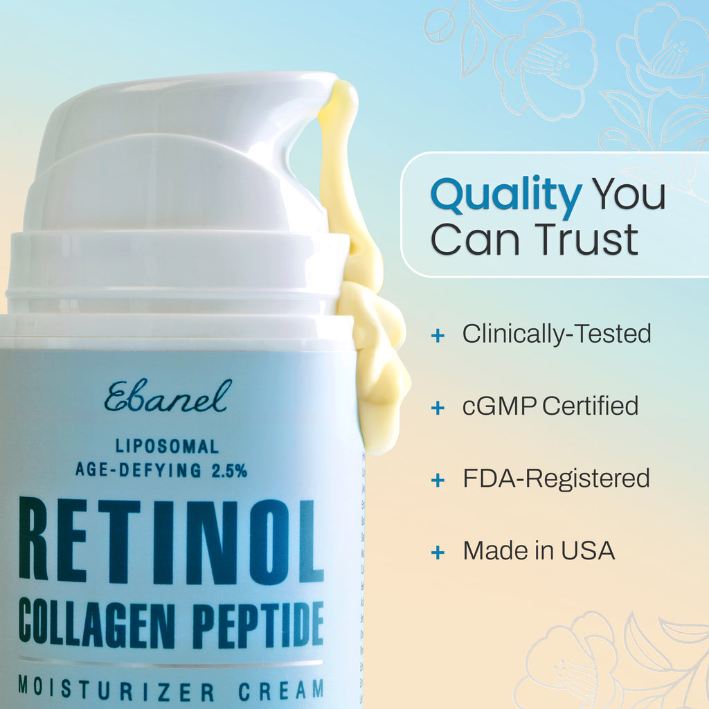 Water, Caprylic/Capric Triglyceride, C12-15 Alkyl Benzoate, Glycerin, Butyrospermum Parkii (Shea) Butter, Niacinamide, Cetearyl Alcohol, Glyceryl Stearate, PEG-100 Stearate, Butylene Glycol, Persea Gratissima (Avocado) Oil, Retinol, Hydrolyzed Collagen, Retinyl Palmitate, Ceramide NP, Ceramide AP, Ceramide EOP (Ceramide 1), Nicotinoyl Tripeptide-1, Decapeptide-12, Ascorbic Acid, Panthenol, Sodium Hyaluronate, Resveratrol, Tocopherol, Tocopheryl Acetate, Bakuchiol, Simmondsia Chinensis (Jojoba) Seed Oil, Geranium Maculatum Extract, Boswellia Serrata Resin Extract, Aloe Barbadensis Leaf Juice, Glycyrrhiza Glabra (Licorice) Root Extract, Citrus Aurantium Dulcis (Orange) Peel Oil, Vitis Vinifera (Grape) Callus Culture Extract, Rhododendron Ferrugineum Leaf Cell Culture Extract, Polygonum Cuspidatum (Knotweed) Root Extract, Camellia Sinensis Leaf Extract, Ubiquinone, Camellia Japonica Seed Oil, Allantoin, 1,2-Hexanediol, Isomalt, Cholesterol, Lecithin, Ceteareth-20, Sodium Lauroyl Lactylate, Dimethicone, Xanthan Gum, Carbomer, Disodium EDTA, BHA, BHT, Polysorbate 20, Phytosphingosine, Ethylhexylglycerin, Sodium Benzoate, Phenoxyethanol, Triethanolamine